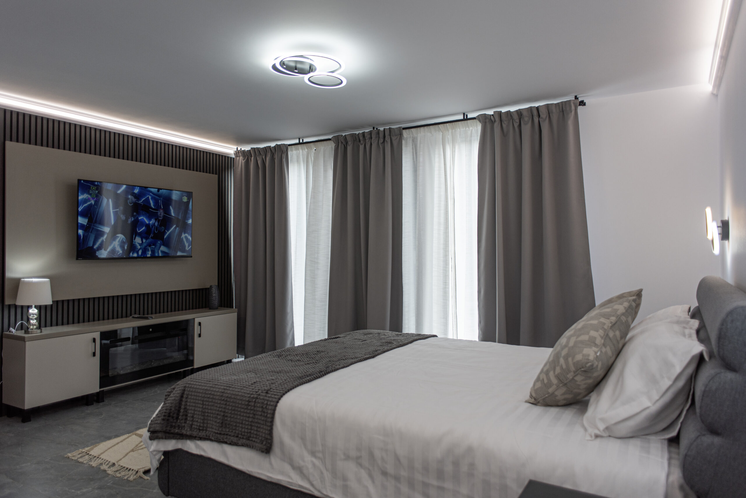 Cameră ideală pentru familie sau prieteni, aflată la parter, cu ieșire directă pe terasă – locul perfect pentru a savura cafeaua de dimineață. Dormitorul modern decorat, baia elegantă, patul dublu și canapeaua extensibilă creează un spațiu confortabil pentru 3 persoane. Oaspeții se bucură de parcare privată și de siguranță deplină, cu acces securizat atât pe cartelă, cât și prin cod personalizat.